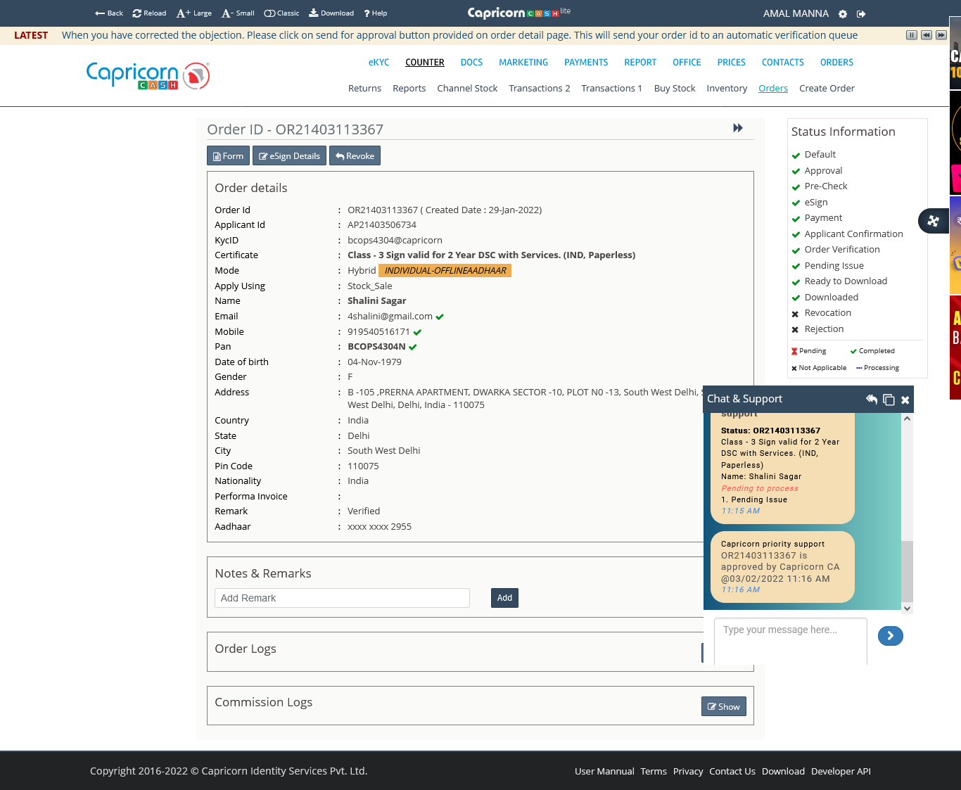| 2871 | Digital Certificate Class 3 Individual (Only for Signature)-2Years | NANDADULAL PATRA | VILL AND P.O- SHIBNAGAR ABAD, P.S- NAMKHANA, DIST.- SOUTH 24 PARGANAS, W.B- 743357 | ||||||